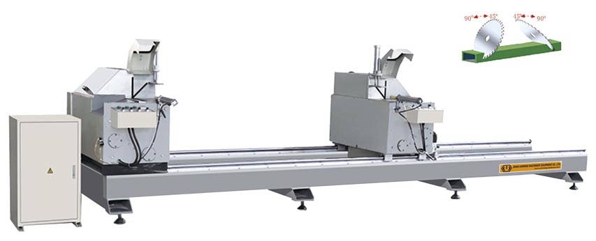 這些設備的用途分別是:雙角鋸用于PVC型材的定尺、定角度鋸切下料;V型鋸用于框挺的V型口鋸切;中梃鋸用于中梃料90端面定尺切割、玻璃壓條鋸用于各種玻璃壓條型材的定尺、定角度鋸切下料;無齒鋸用于增強型鋼的定尺下料。